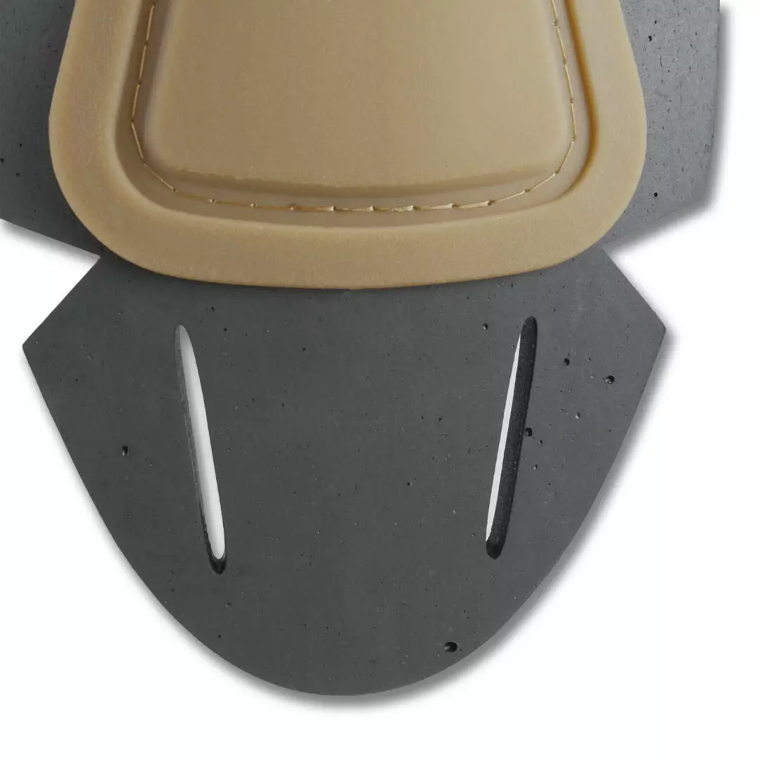 Основание EVA вырезано с помощью технологии Laser Cut. Имеет специальные вырезы для гибки во время эксплуатации. Подходит под большинство брюк с карманами под наколенники.