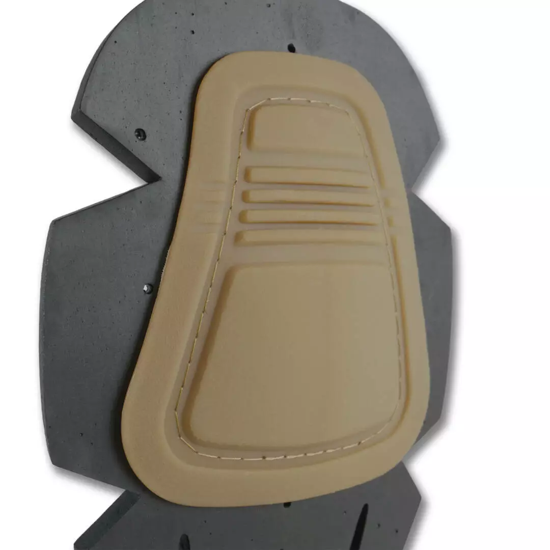 Пришивные накладки наколенников изготовлены из материала ТЭП, которые по сравнению с обычными пластиковыми имеют более гибкую и мягкую фактуру. Это специальные накладки для надежной защиты колен, которые вшиваются в униформу. Внутренняя часть нейлонового наколенника полностью монолитна, что обеспечивает комфорт и отсутствие неудобств при использовании, даже при минимальной толщине подклада. Накладка на колено имеет рифленую структуру, которая предотвращает скольжение по разным поверхностям. Наружная сторона является матовой.