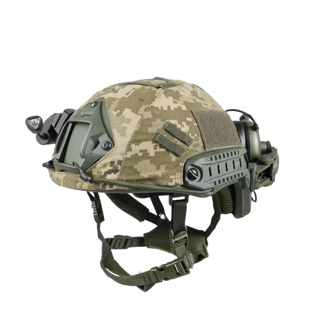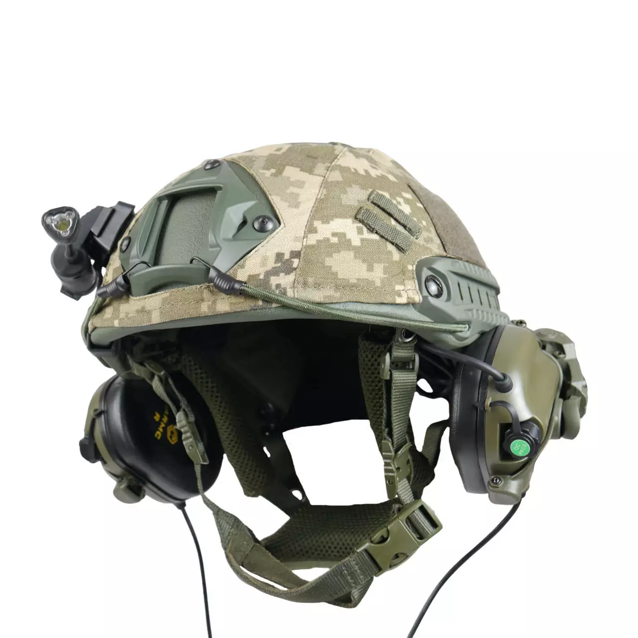 Полный Комплект Тактический Баллистический Шлем с Кавером Наушниками Чебурашками Фонариком Военная Каска