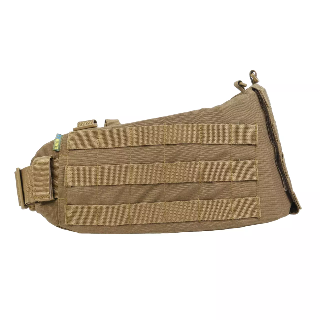 На боковых частях три ряда системы molle для крепления итогов или дополнительного снаряжения. Задняя часть увеличена и выполнена с 4-мя рядами molle, что позволяет максимально снарядить пояс необходимым снаряжением. Регулировка пояса происходит в 2 стороны благодаря специальному двухщелевому фастексу WJ, и скрытым двухщелям в самом поясе.