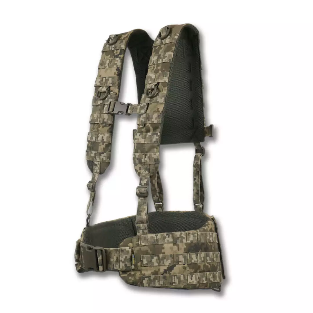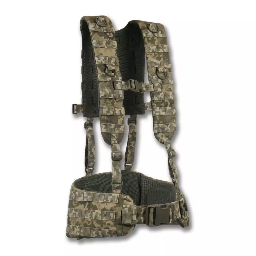 На боковых частях 2 ряда системы molle для крепления итогов или дополнительного снаряжения. Задняя часть увеличена и выполнена с 4-мя рядами molle, что позволяет максимально снарядить пояс необходимым снаряжением. Регулировка пояса происходит в 2 стороны благодаря специальному двухщелевому фастексу WJ и скрытым двухщелям в самом поясе.