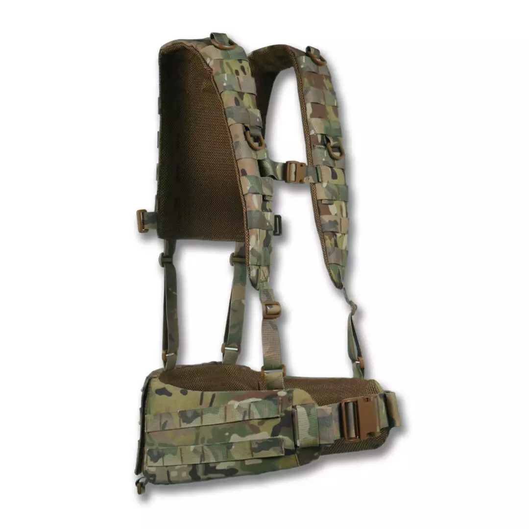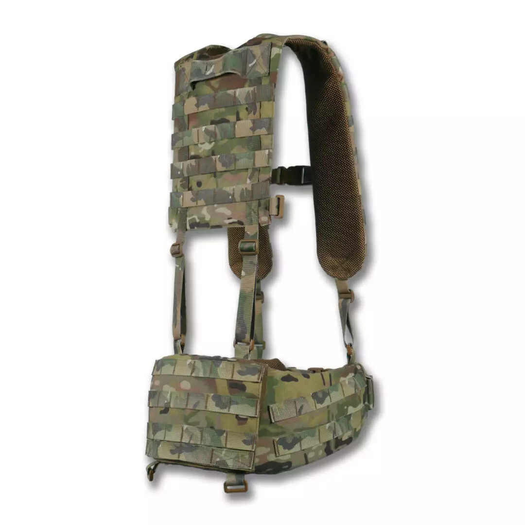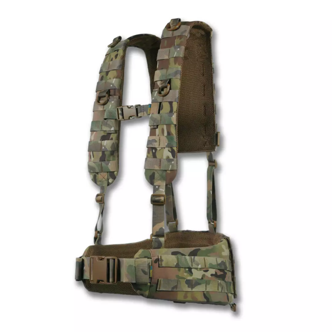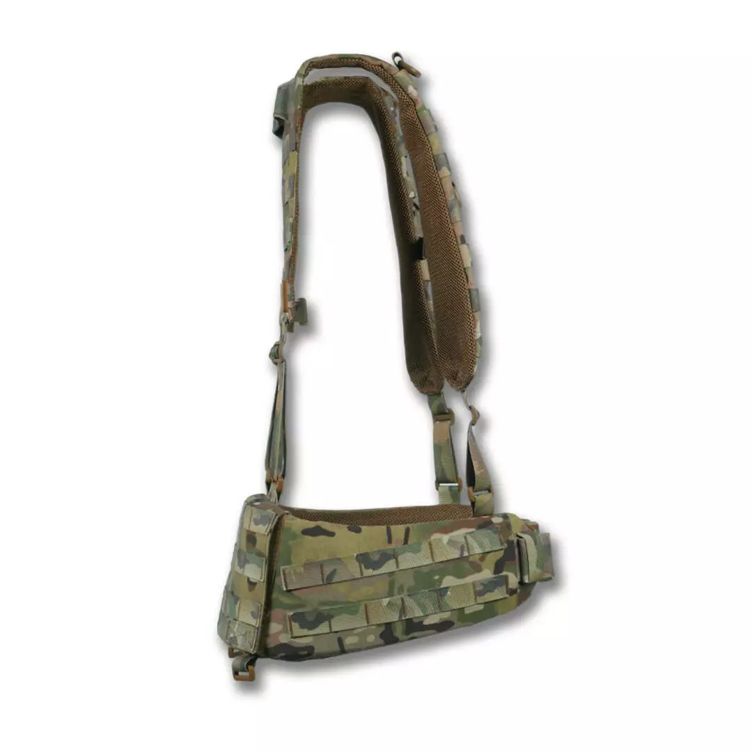 На боковых частях 2 ряда системы molle для крепления итогов или дополнительного снаряжения. Задняя часть увеличена и выполнена с 4-мя рядами molle, что позволяет максимально снарядить пояс необходимым снаряжением. Регулировка пояса происходит в 2 стороны благодаря специальному двухщелевому фастексу WJ и скрытым двухщелям в самом поясе.