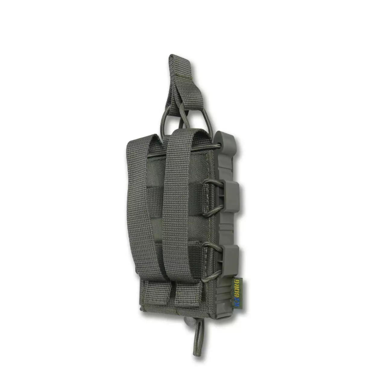 В нашем подсумке магазин надежно фиксируется и не выпадает даже если перевернуть и сильно потрясти. При этом легко и быстро вынимается рукой.