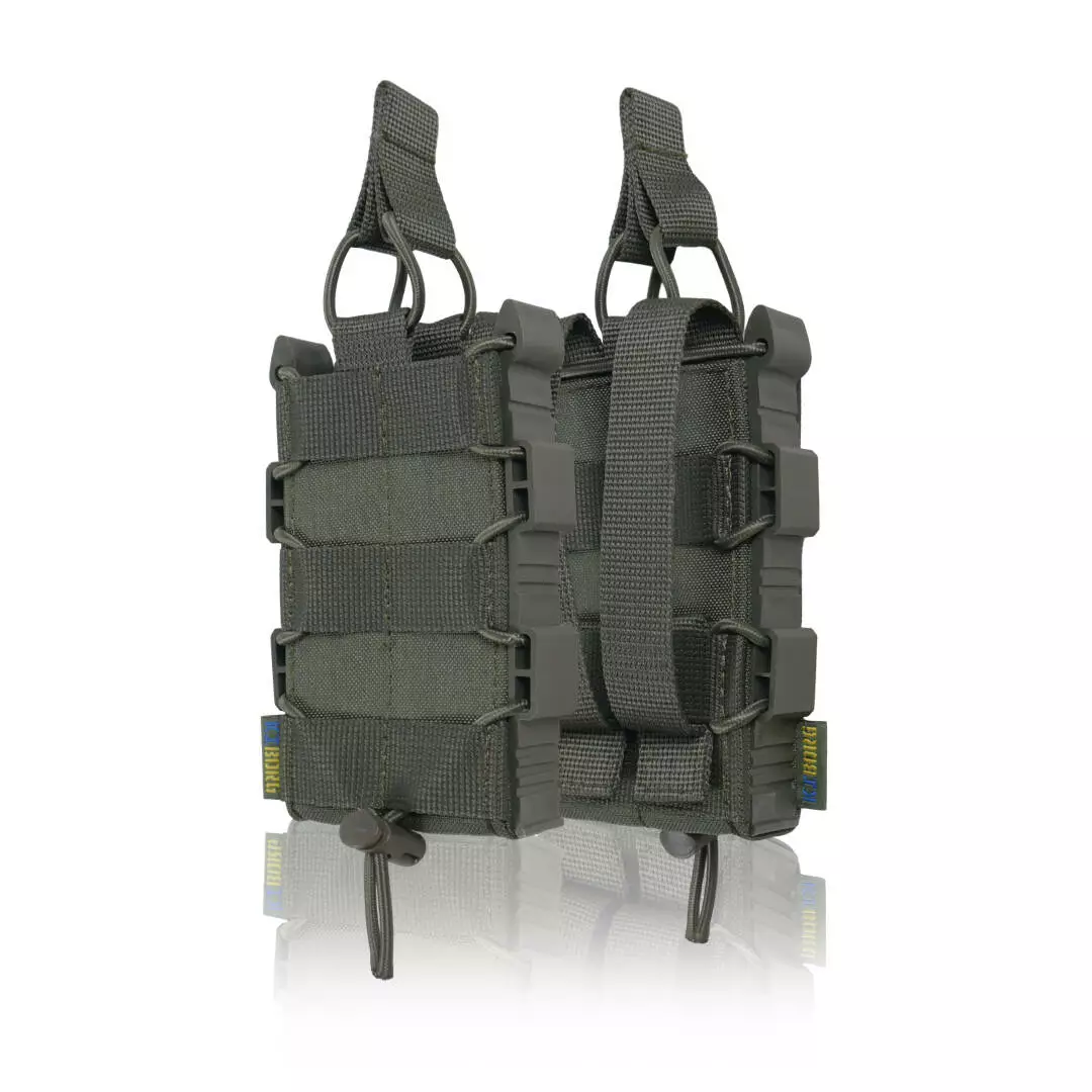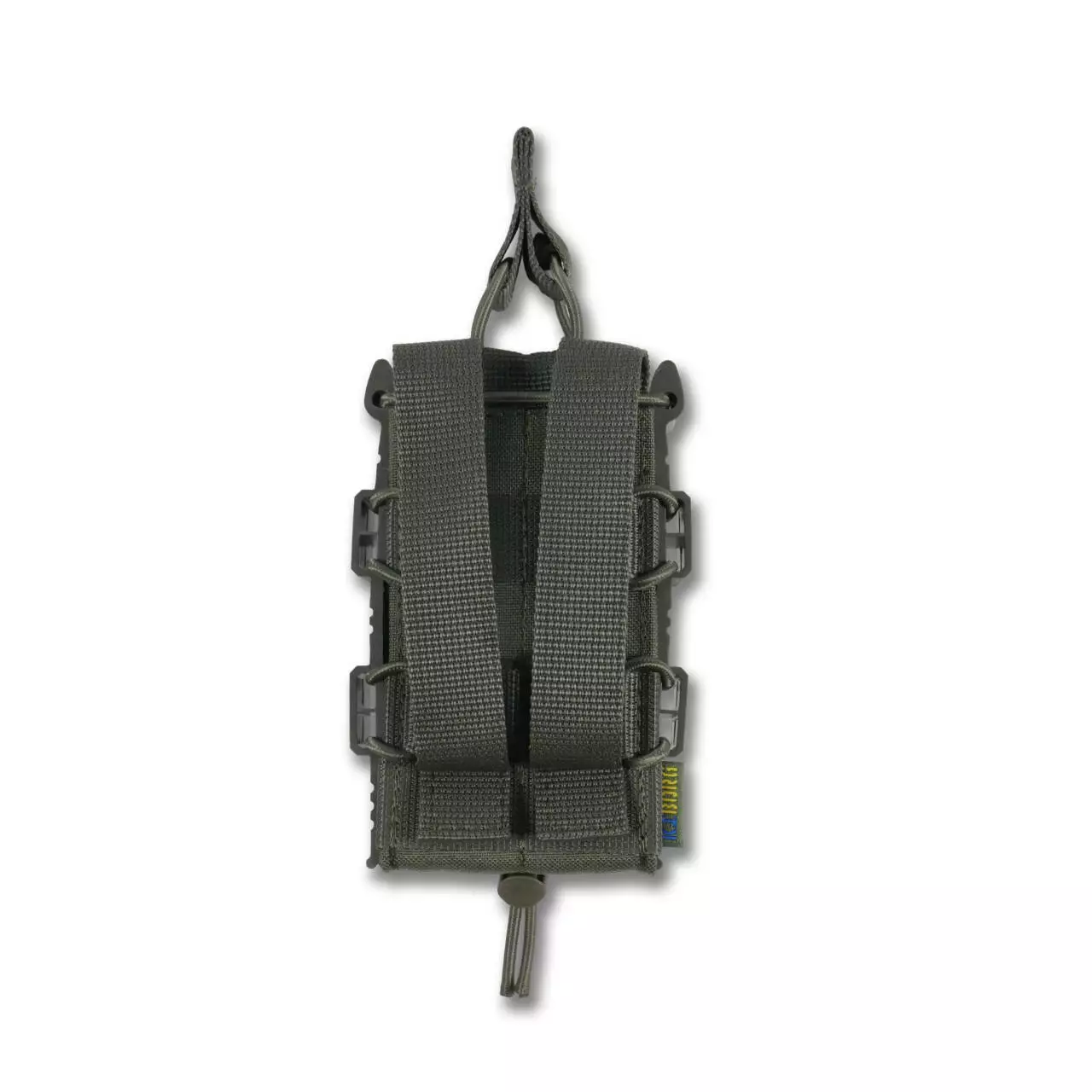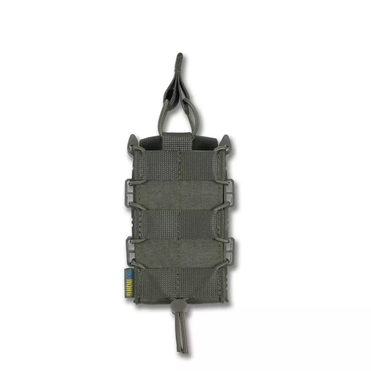 Сила сжатия магазина регулируется шнурком-резинкой с качественным фиксатором, которым стянут подсумок. Сверху есть дополнительный фиксатор на резинке, который при необходимости можно снять.
